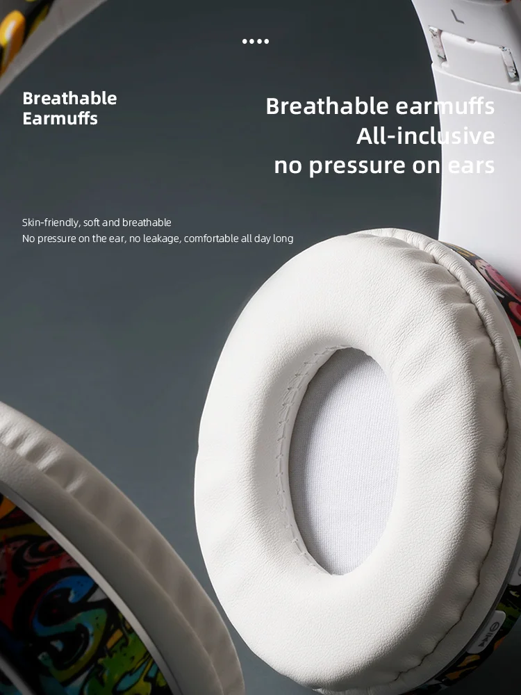 Feature 9: Graffiti Wireless Bluetooth Headsets Headphones HIFI 3D Stereo Earbuds Foldable Gaming Earphones TF Card Noise Reduction Headset