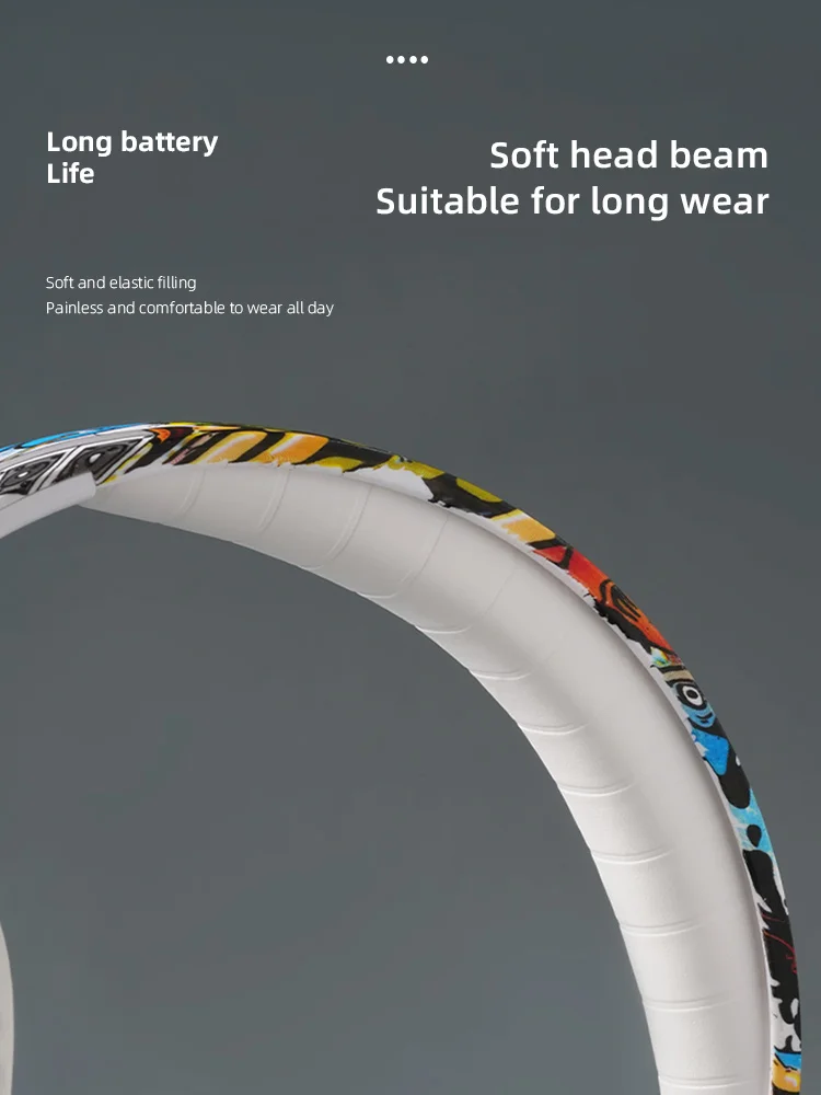 Feature 7: Graffiti Wireless Bluetooth Headphones DJ In Mic RGB LED Light For Kids PC Gamer Earphone Support TF Card New Year Gift Headsets