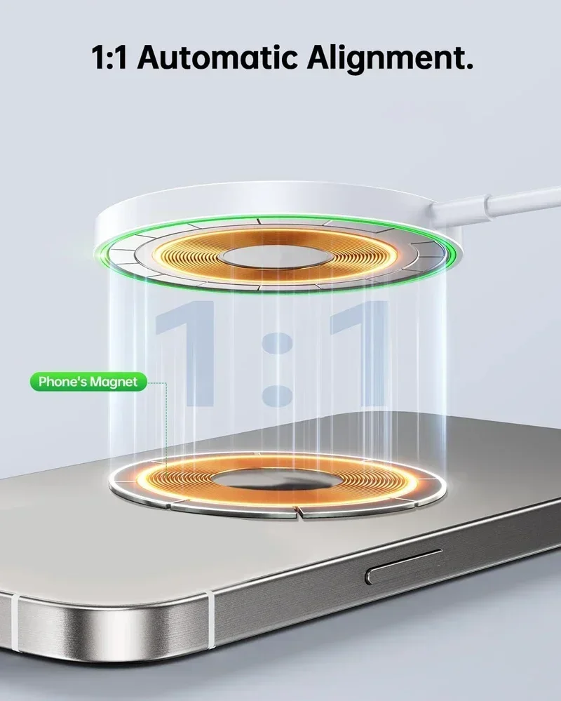 【Magnetic Alignment & Easy charging at night】 In the dark of the bedroom, you do not worry about how difficult to find the charging port. Even put down your iPhone 12/13/14/15/16 on the wireless charging pad casually , it will be automatically aligned charging. Perfectly auto aligned with your phone, whether you are working, playing games, watching videos, listening to music, or chatting with your family and friends.