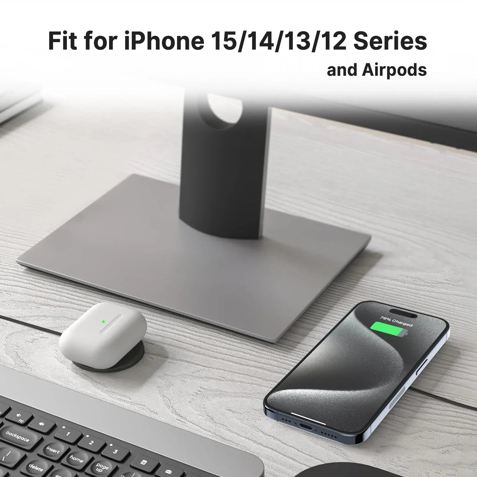 【For iPhone 12/13/14/15/16】 Magnetic wireless charger provides fast and efficient wireless charging for your devices. Compatible with iPhone 16 15 14 13,iPhone15,iPhone15 Pro,iPhone14 Pro,iPhone 13 Pro, iPhone iPhone 13 mini, iPhone 12, iPhone 12 Pro, iPhone 12 mini . It's also support charging compatible with AirPods 3, AirPods 2, AirPods Pro, and Charger-adapted official case.