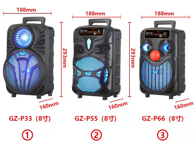 Configuration: 8-inch bass + colorful lights (GZ-P33 is a colorful light ball)